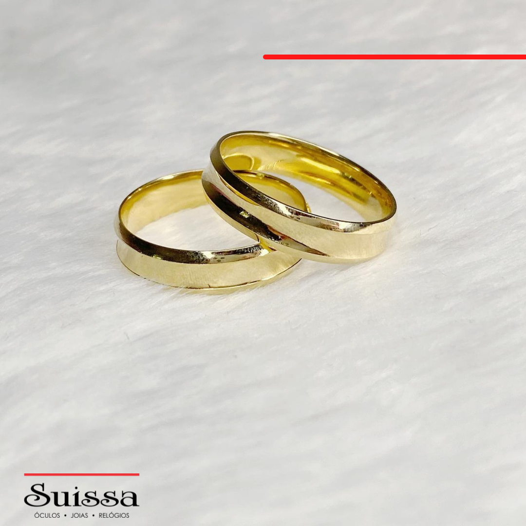 Par de Alianças em Ouro 18K Abauladas