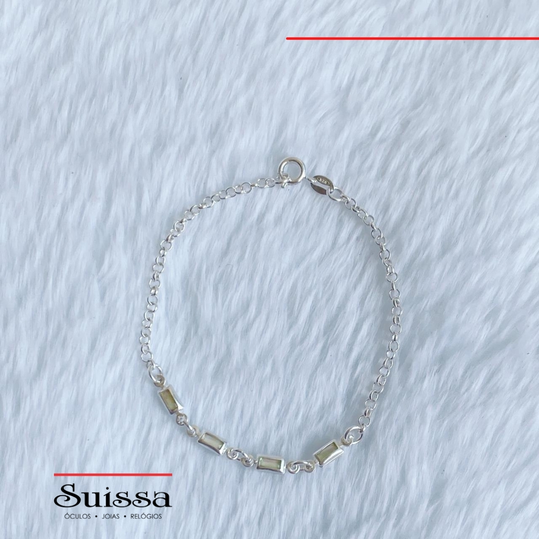 Pulseira em Prata 925 Elos Portugueses E Madre Pérola