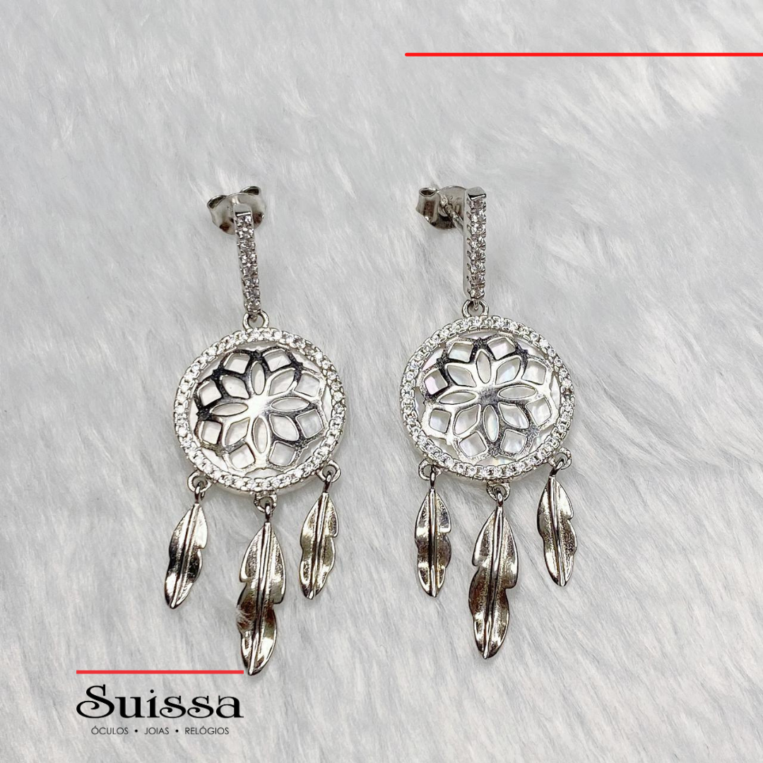 Brincos em Prata 925 Filtro dos Sonhos detalhes em Madrepérola