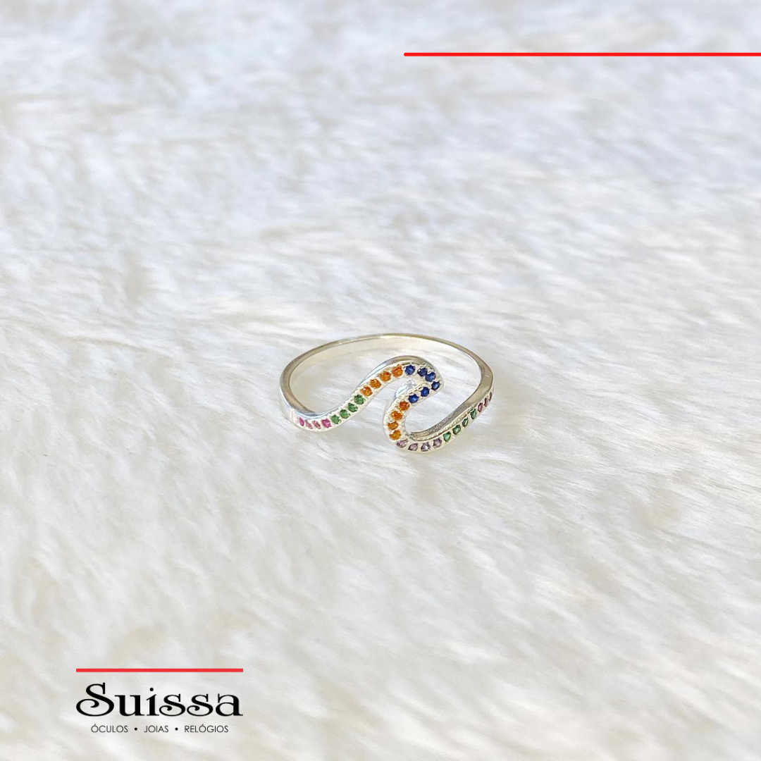 Anel Onda em Prata 925 Cravejado de Zircônias Coloridas