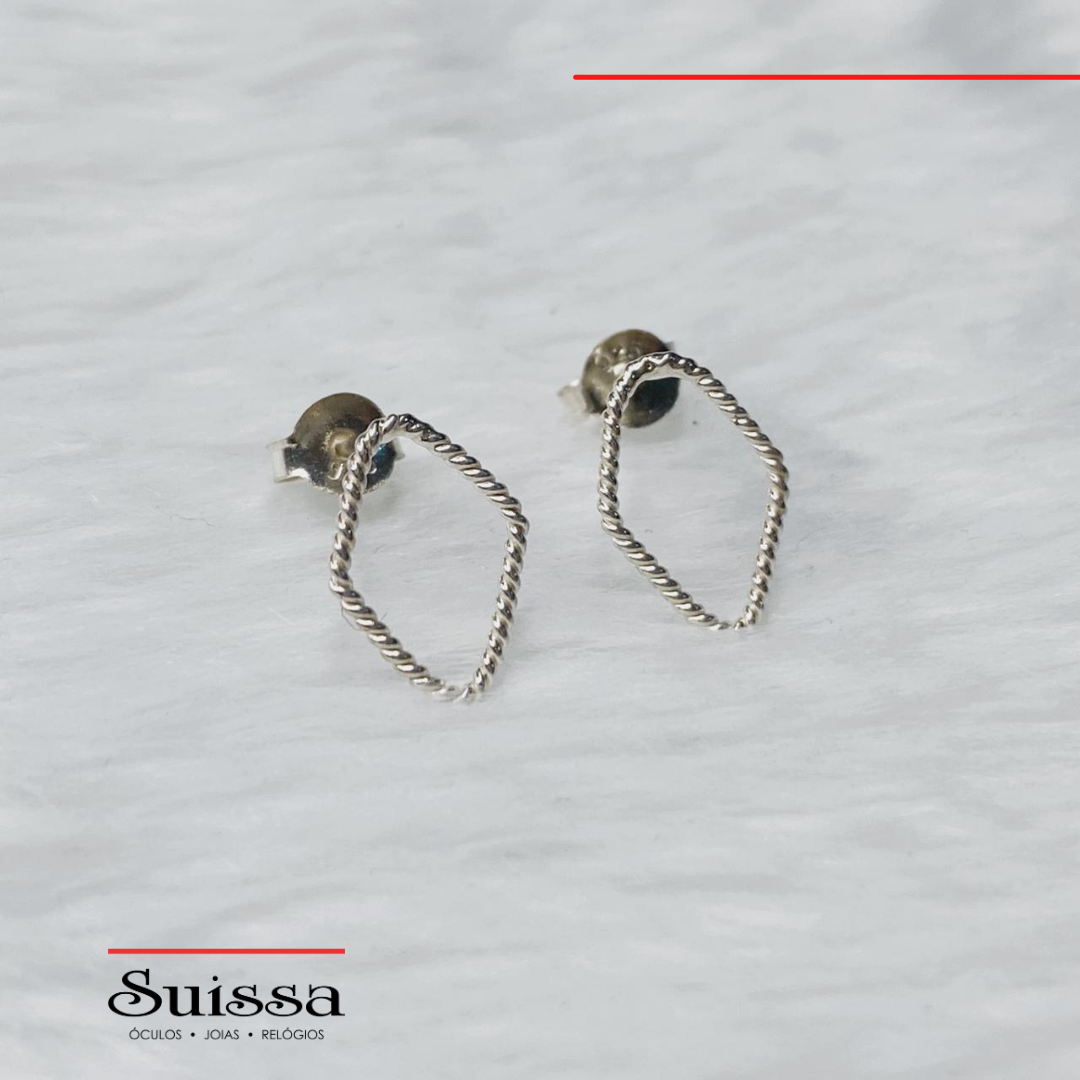 Brinco confeccionado em prata 925 com design de um lindo losango torcido.