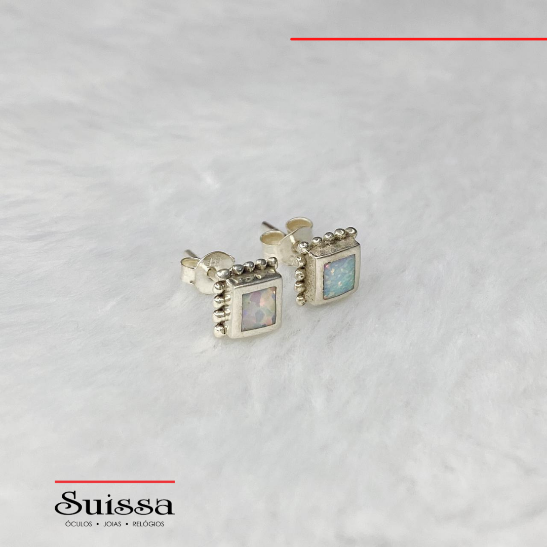 Brincos Quadrados em Prata 925 com Pedrada Lua