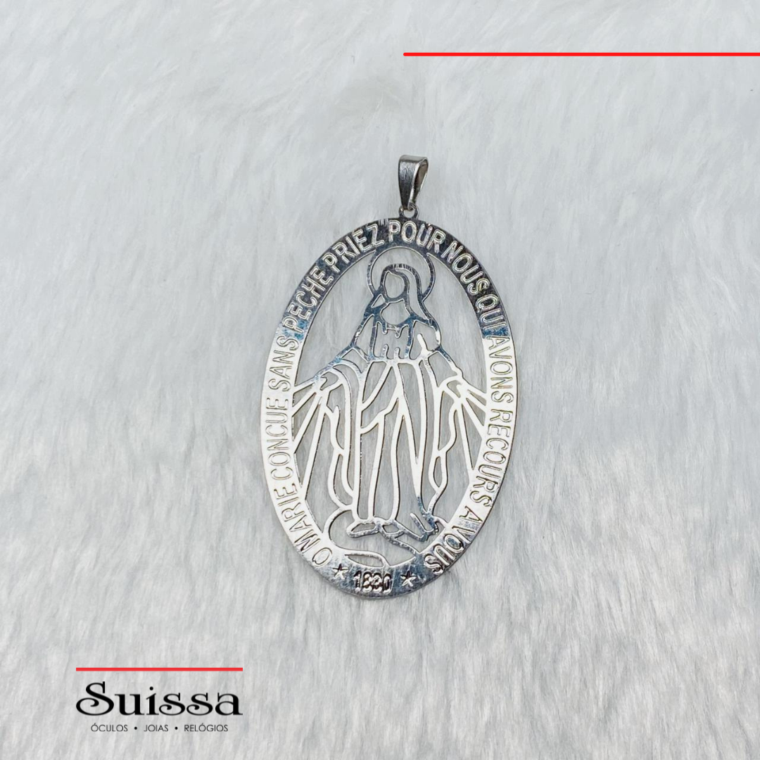 Um lindo pingente para quem tem fé! Confeccionado em aço, o pingente conta Nossa Senhora Aparecida com detalhes vazados.