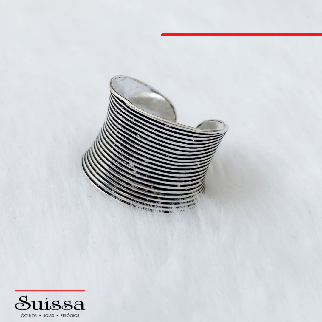 Anel em Prata 925 Ajustável Aro Largo Trabalhado