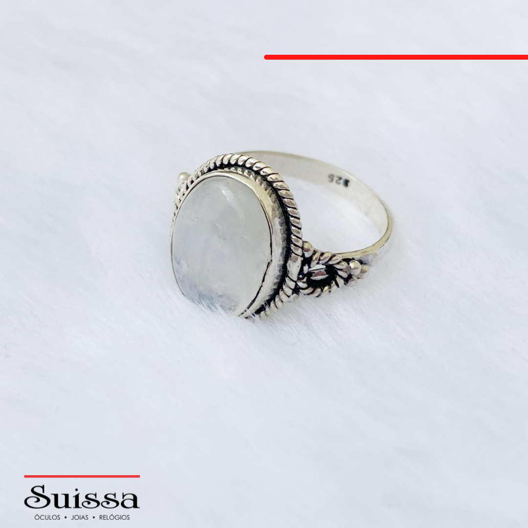 Anel em Prata 925 Aro Aro Liso Pedra da Lua Oval
