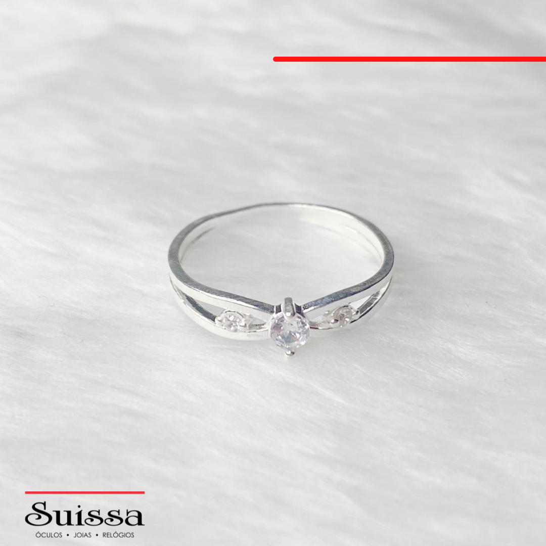 Anel em Prata 925 - Aro Duplo Vazado e Cravejado com Zircônias Brancas