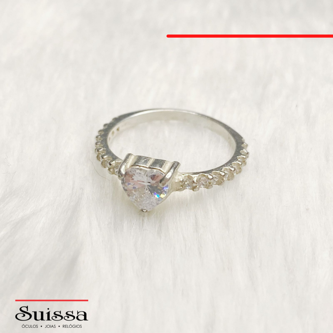 Anel em Prata 925 Aro Trabalhado Coração em Zircônia Branco