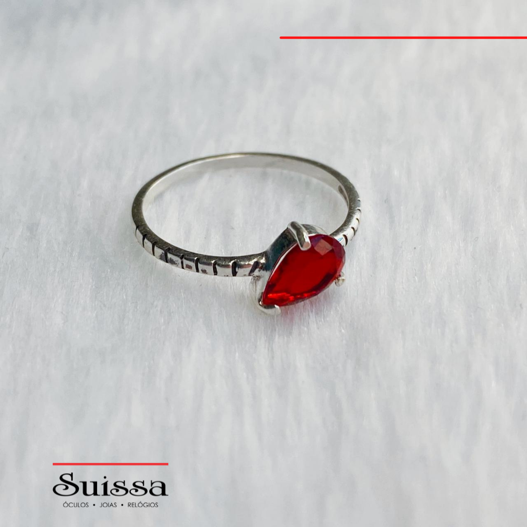 Anel em Prata 925 com Zircônia em Gota Vermelha
