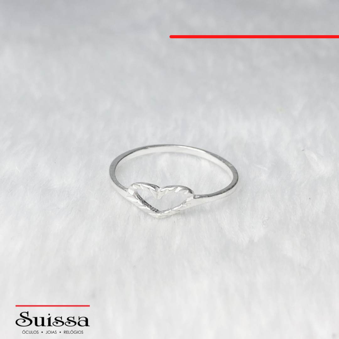 Anel em Prata 925 Coração Vazado Trabalhado