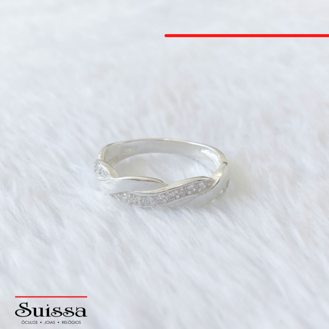 Anel em Prata 925 - Detalhes Entrelaçados e Cravejados com Zircônias Brancas