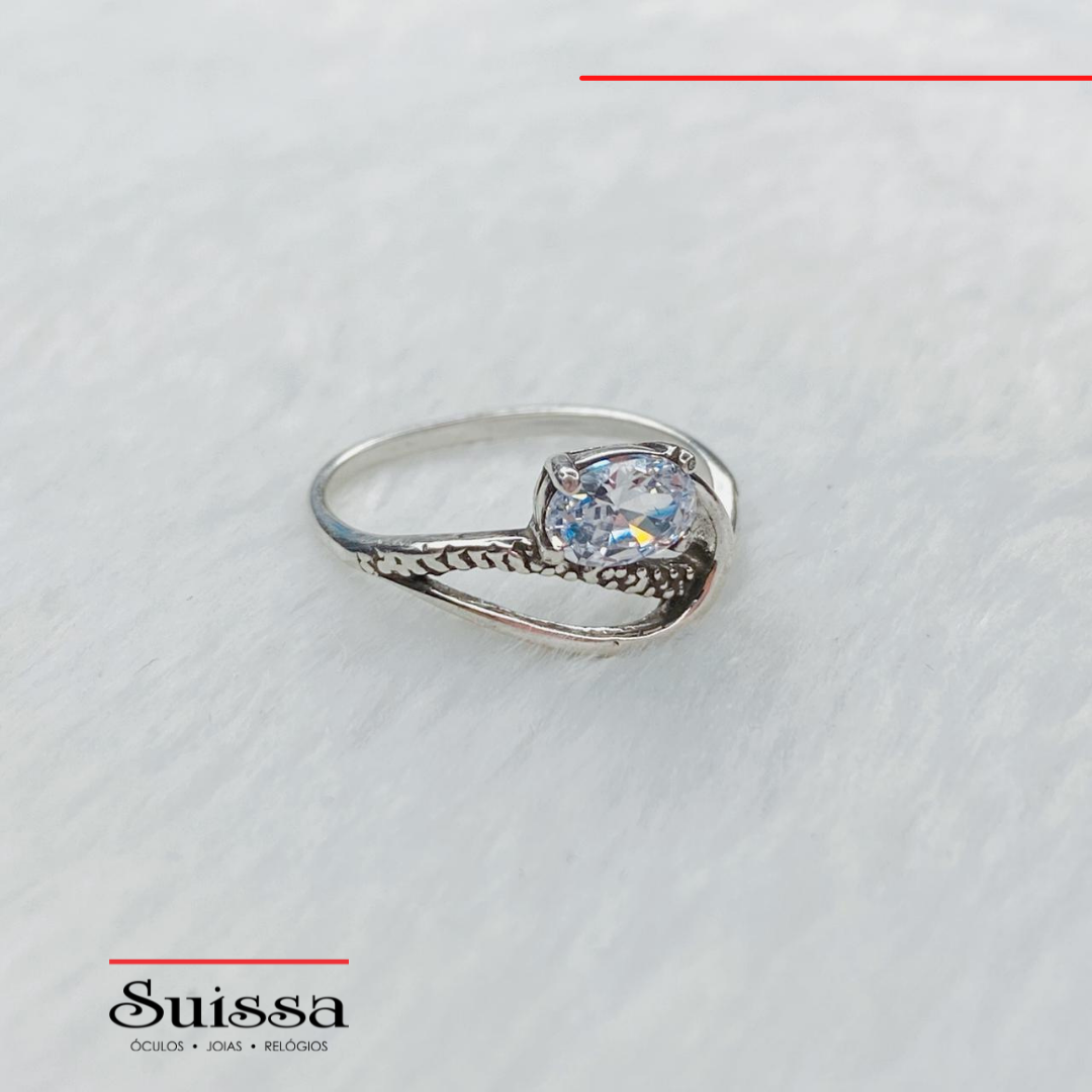 Confeccionado em prata 925, o anel tem aro liso, possui detalhes trabalhados e uma linda zircônia branca.