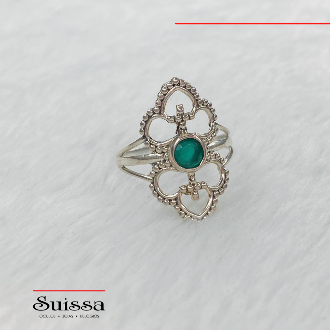 Essa peça é ideal para quem gosta de destaque nas mãos. Confeccionado em prata 925, o anel é todo trabalhado e conta com uma pedra indiana.