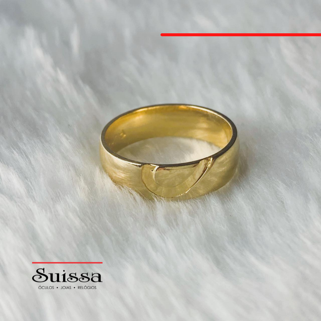 Símbolo de amor, a aliança é confeccionada em ouro 18K, tem acabamento polido e conta com o desenho de metade de um coração.