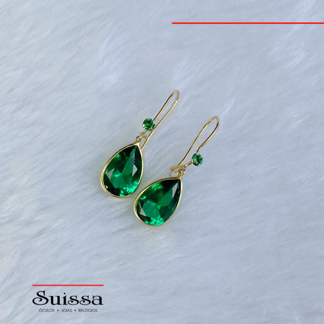 Os brincos contam com design de gancho, contam com acabamento polido e uma linda zircônia em formato de gota na cor verde.