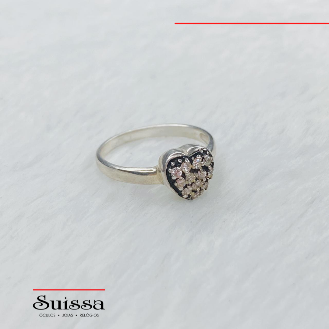 Confeccionado em prata 925, o anel tem aro liso e conta com um lindo coração todo cravejado de zircônias brancas.