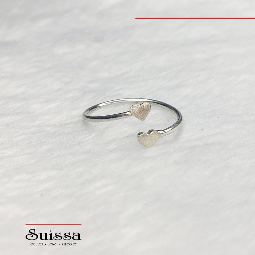 Anel em Prata 925 Regulável Corações