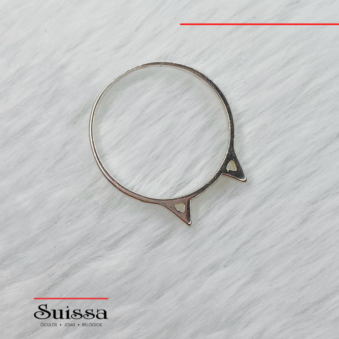Confeccionado em prata 925, o anel tem aro liso e conta com duas orelhinhas de gato muito charmosas.