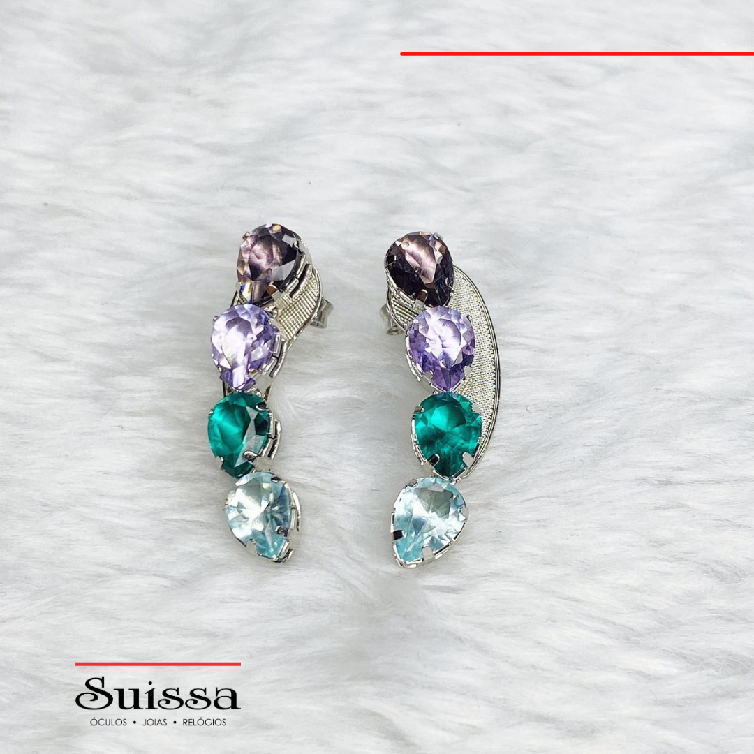 É uma semi joia que conta com quatro zircônias: roxa, lilás, verde água e azul.
