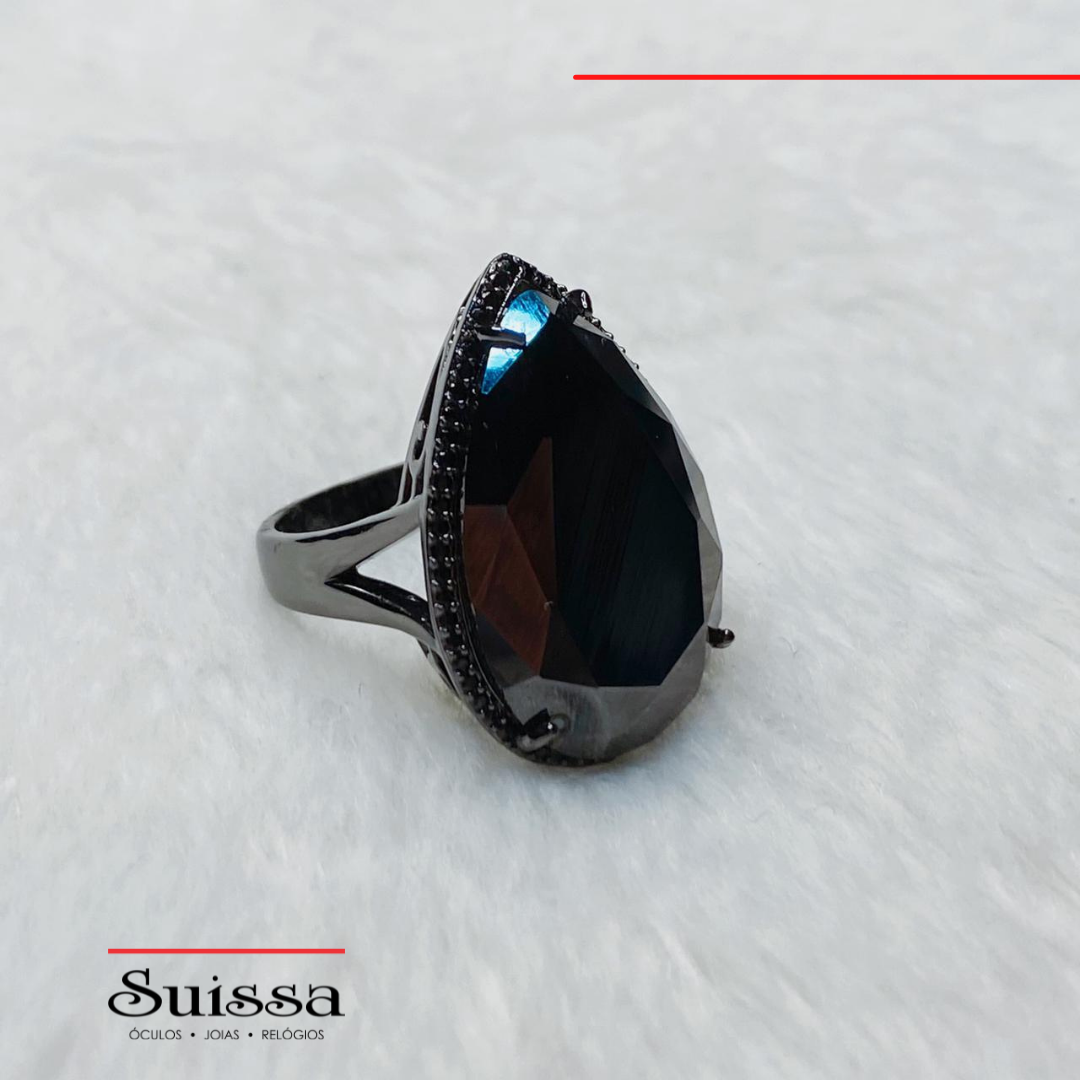 Ele conta com aro duplo e uma linda zircônia preta em formato de gota.