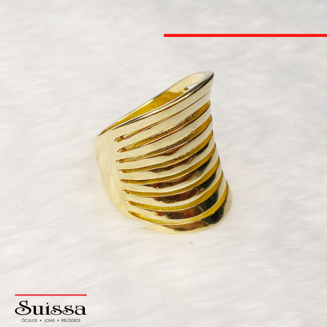 Anel Semijoia Folheado a Ouro Todo Vazado