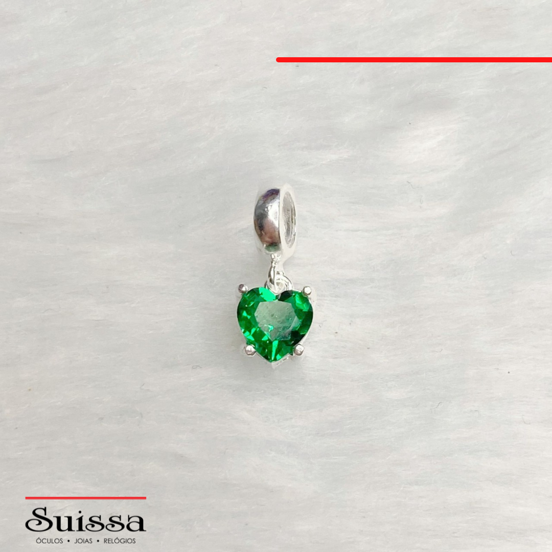 Lindo berloque confeccionado em prata 925 com excelente acabamento e um delicado coração em zircônia verde.