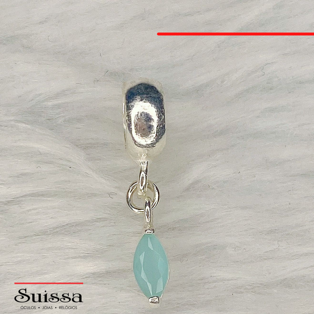 Lindo berloque confeccionado em prata 925 com um murano na cor verde água. Peça com acabamento fino.