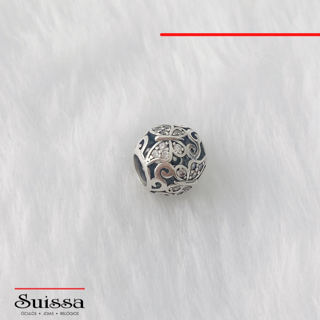 Berloque em Prata 925 Redondo Detalhes Arabescos Borboleta