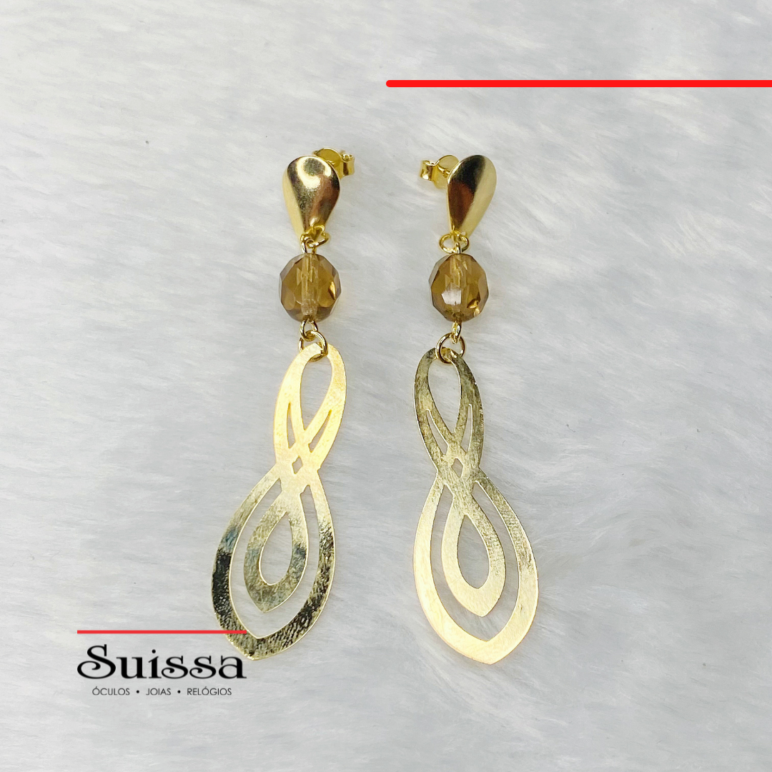 Brinco Folheado a Ouro Trabalhado com Pedra Marrom