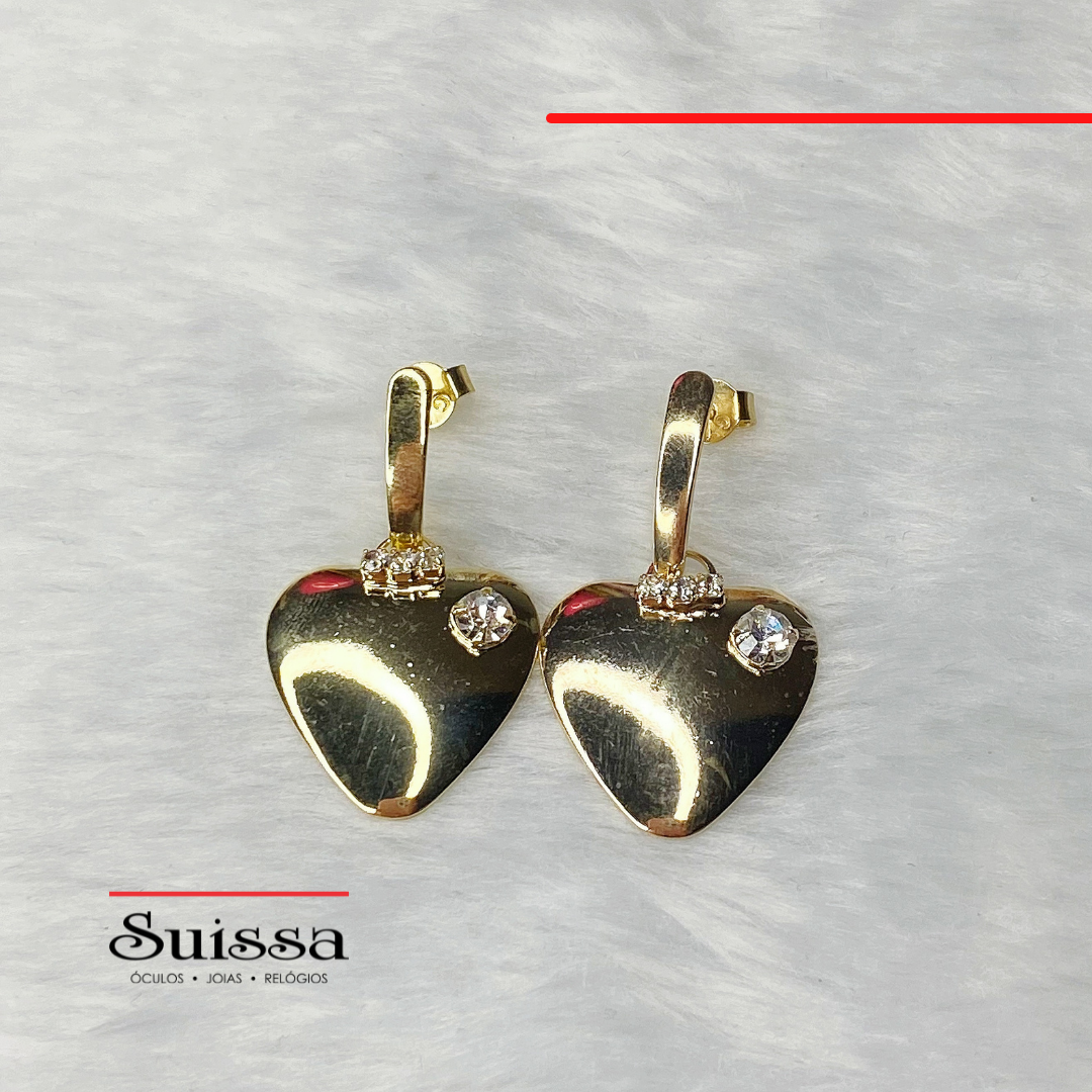 Folheados a ouro, os brincos possuem design de coração e contam com três lindas zircônias que dão muito charme às peças.