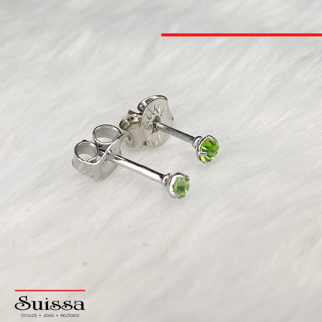 Brincos em aço modelo cálice com zircônia verde. Possui acabamento polido. Confira!