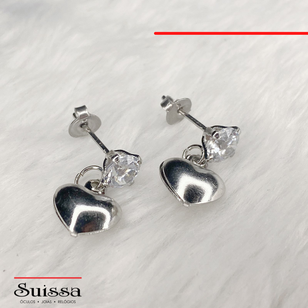 Brincos em Aço Coração com Zircônia Branca