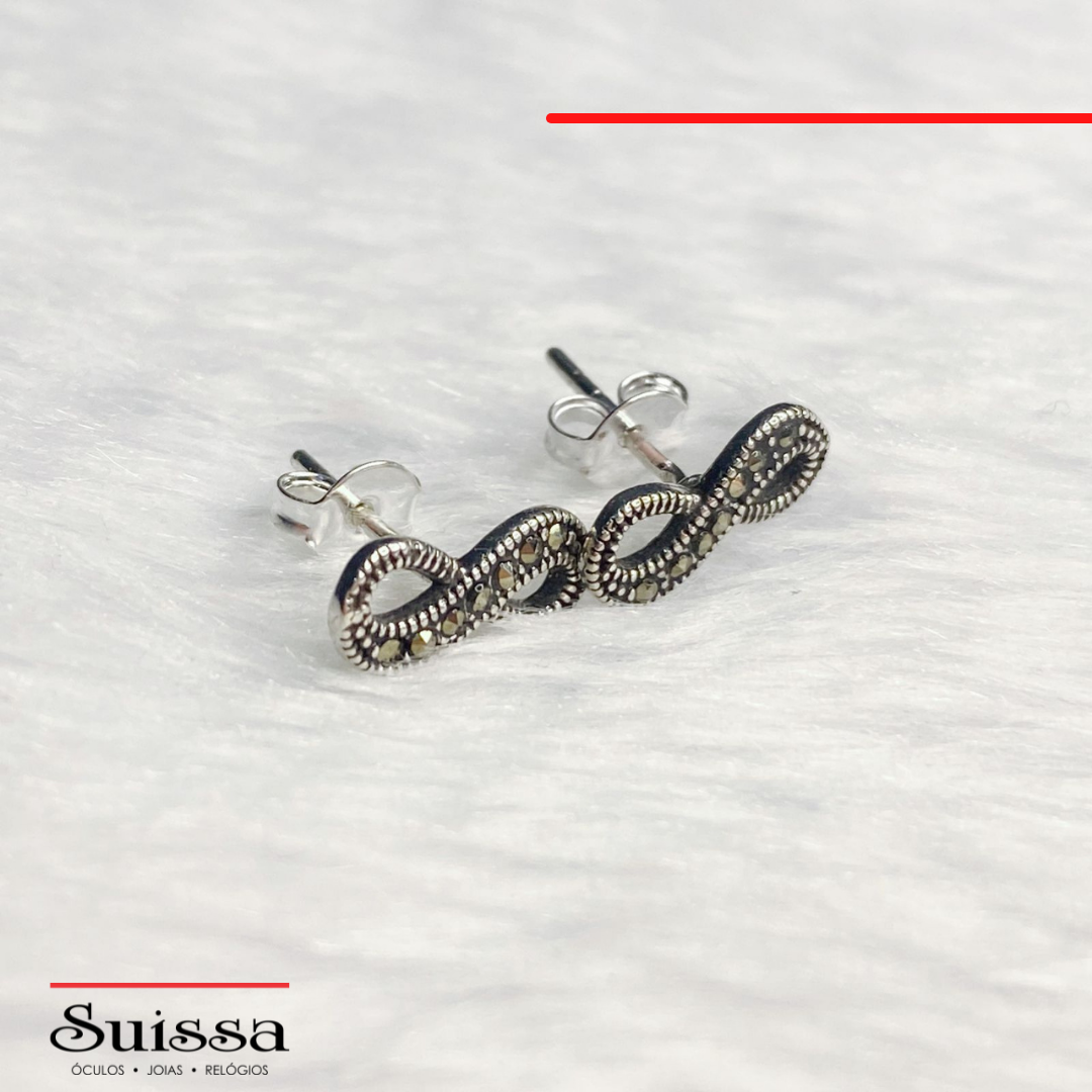 Brincos em Prata 925 em Formato de Infinito com Marcassitas