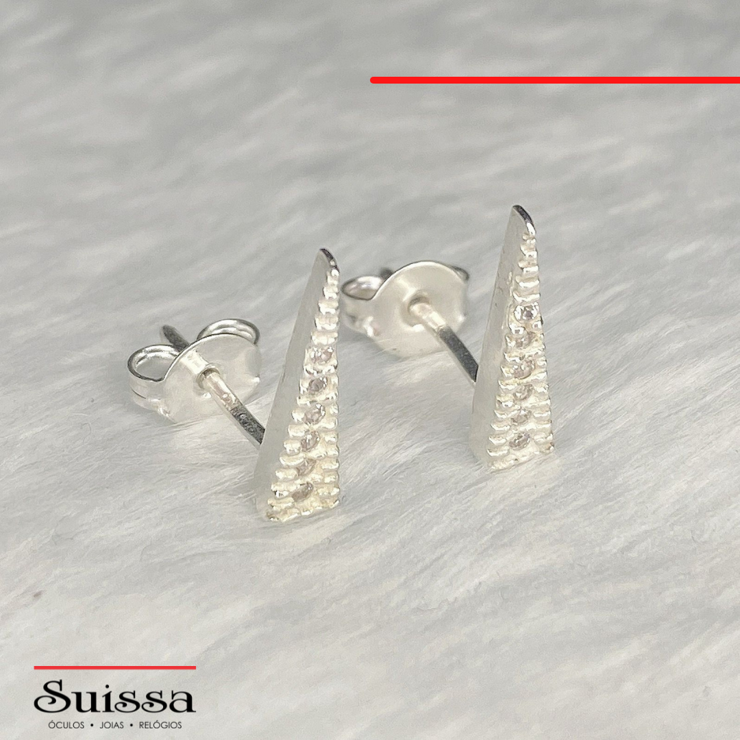 Par de brincos confeccionado em prata 925 modelo triângulo cravejado de zircônias brancas.