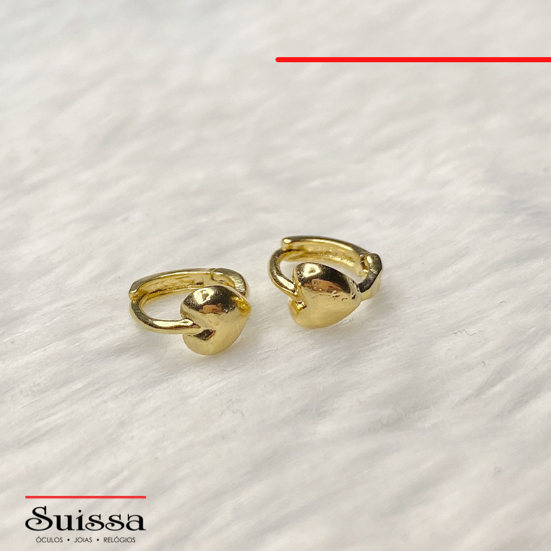 Brincos folheados a ouro modelo coração cheio. Possui acabamento polido. Confira!
