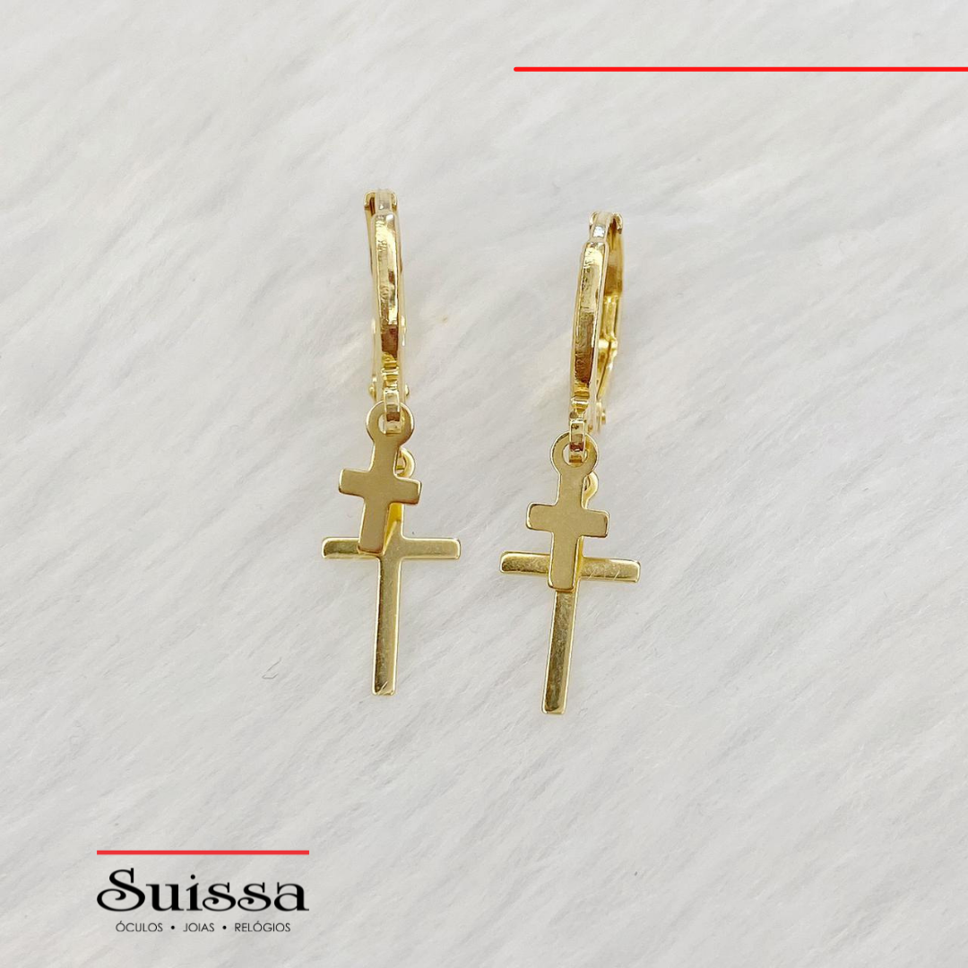 Brincos Folheados a Ouro Argola com Pingente de Cruz