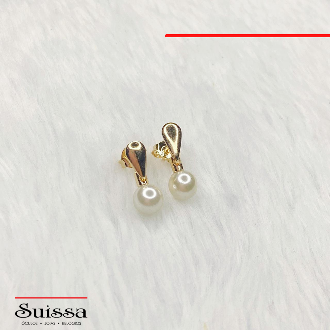 Folheados, a ouro, os brincos contam com design de gota invertida e uma linda e delicada pérola sintética.