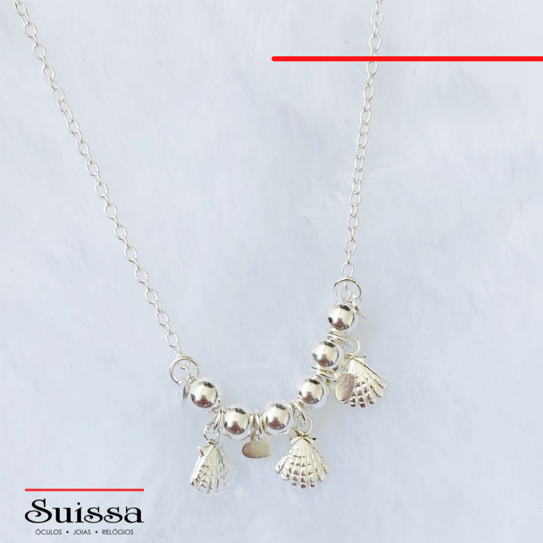 Choker em Prata 925 Bolinhas e Pingente de Concha do Mar