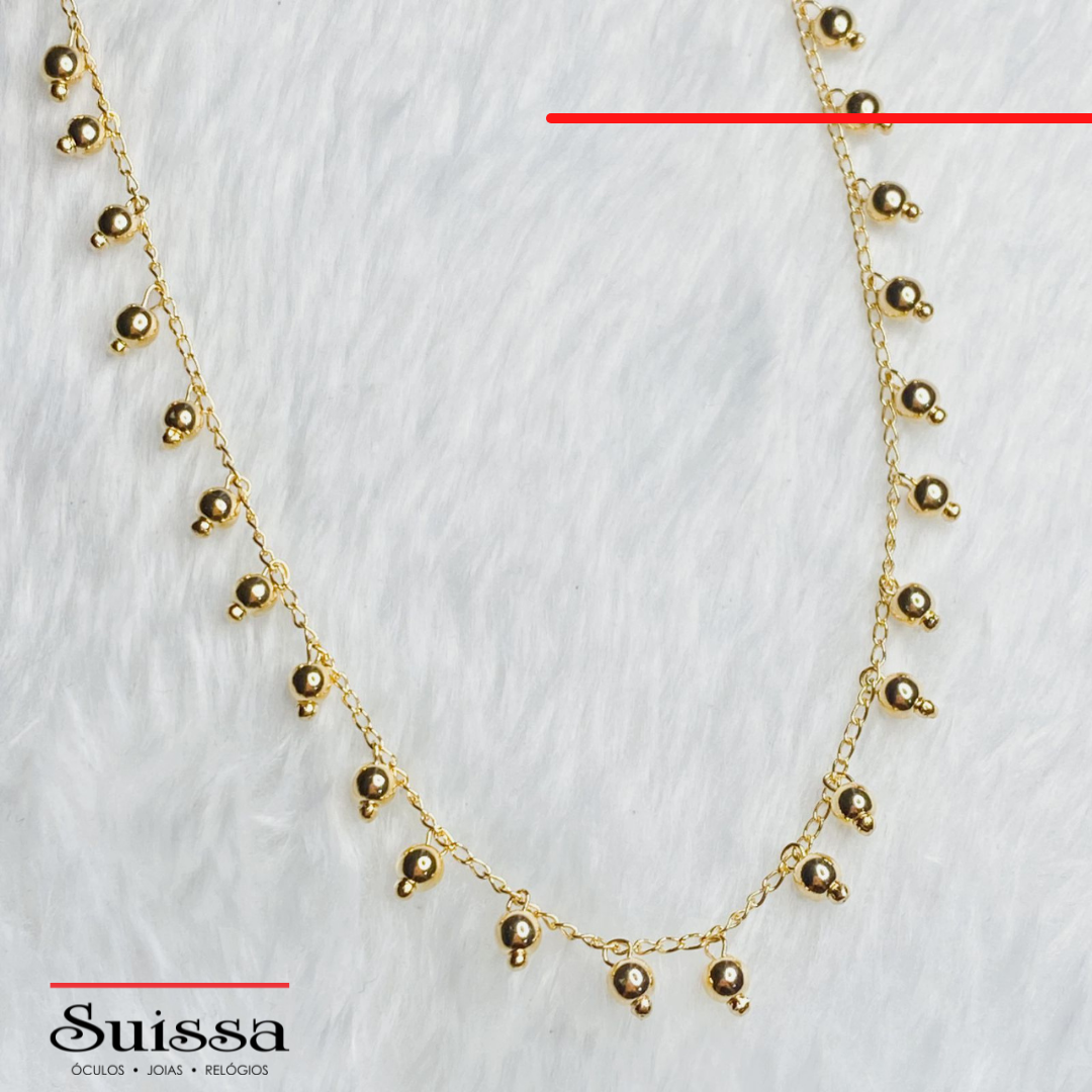 Essa peça é folheada a ouro com diversos pingentes de bolinhas. Confira!