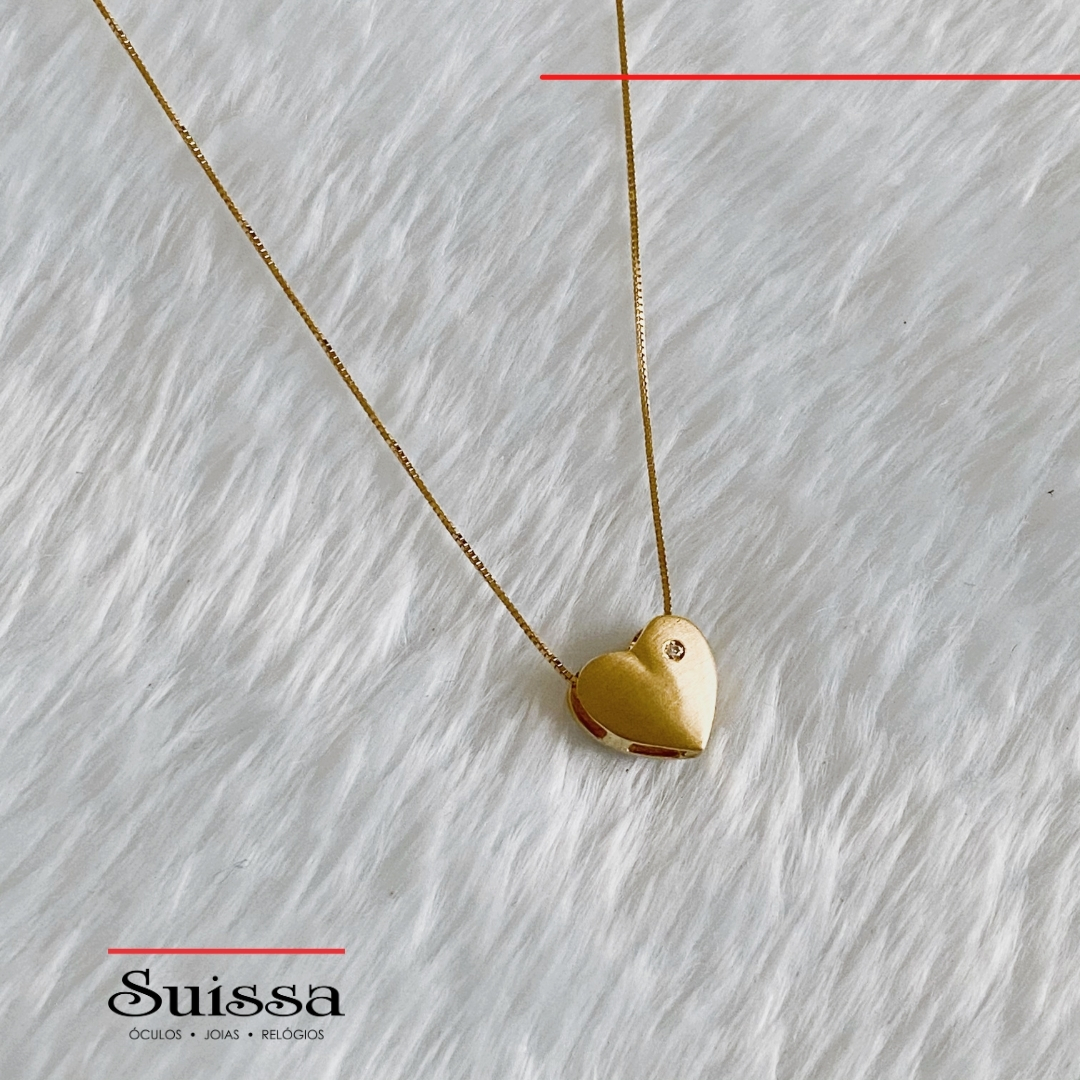 Colar em Ouro 18K Malha Veneziana Pingente de Coração Liso