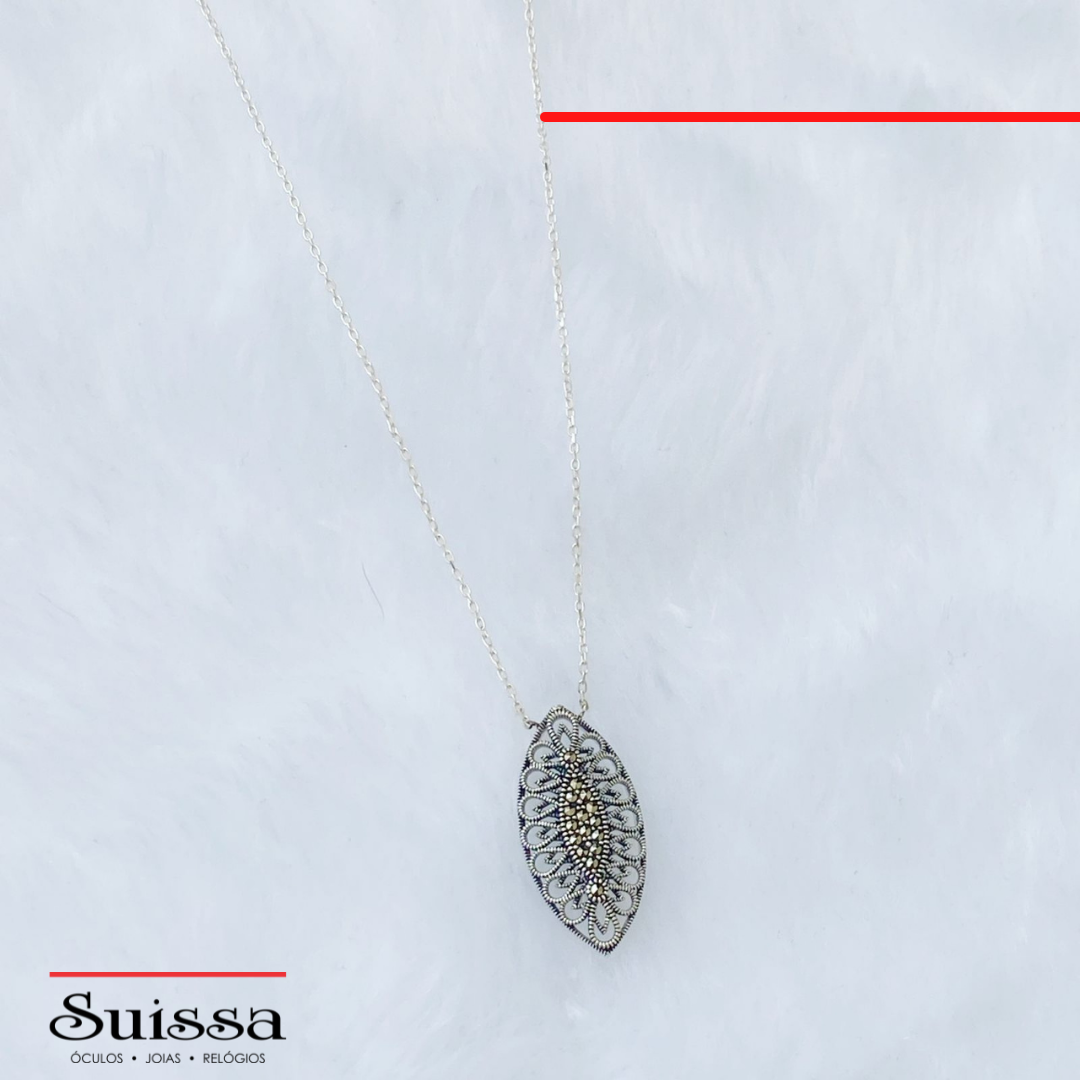 Colar em Prata 925 Elos Ovais Pingente Trabalhado