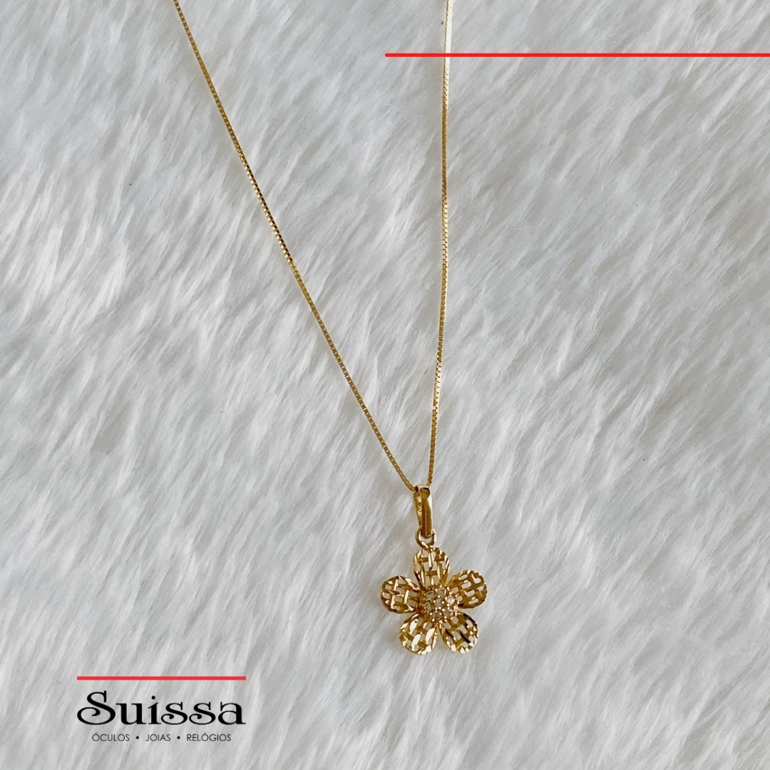 Colar Folheado a Ouro Malha Veneziana Pingente de Flor