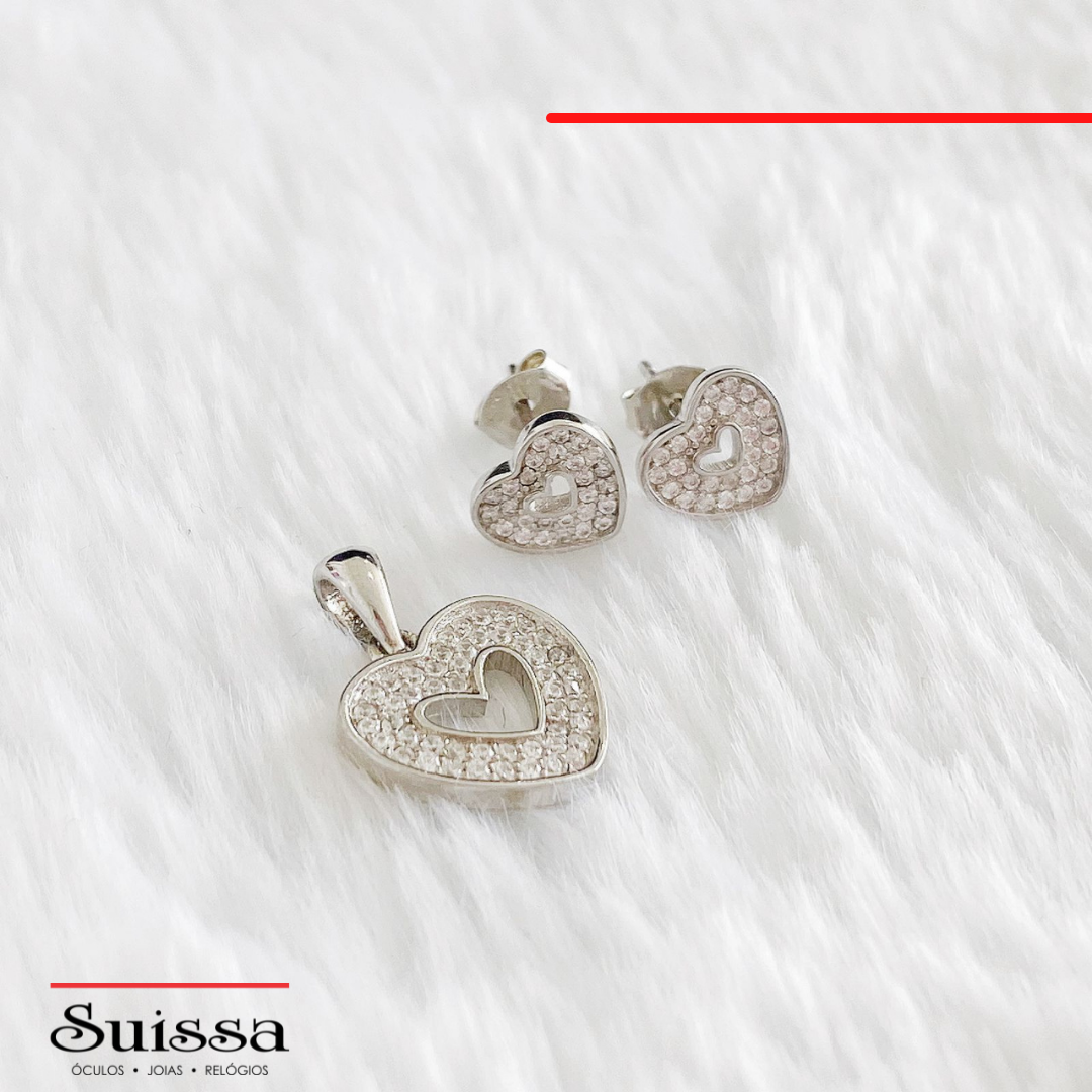 Conjunto Brincos e Pingente de Coração em Prata 925