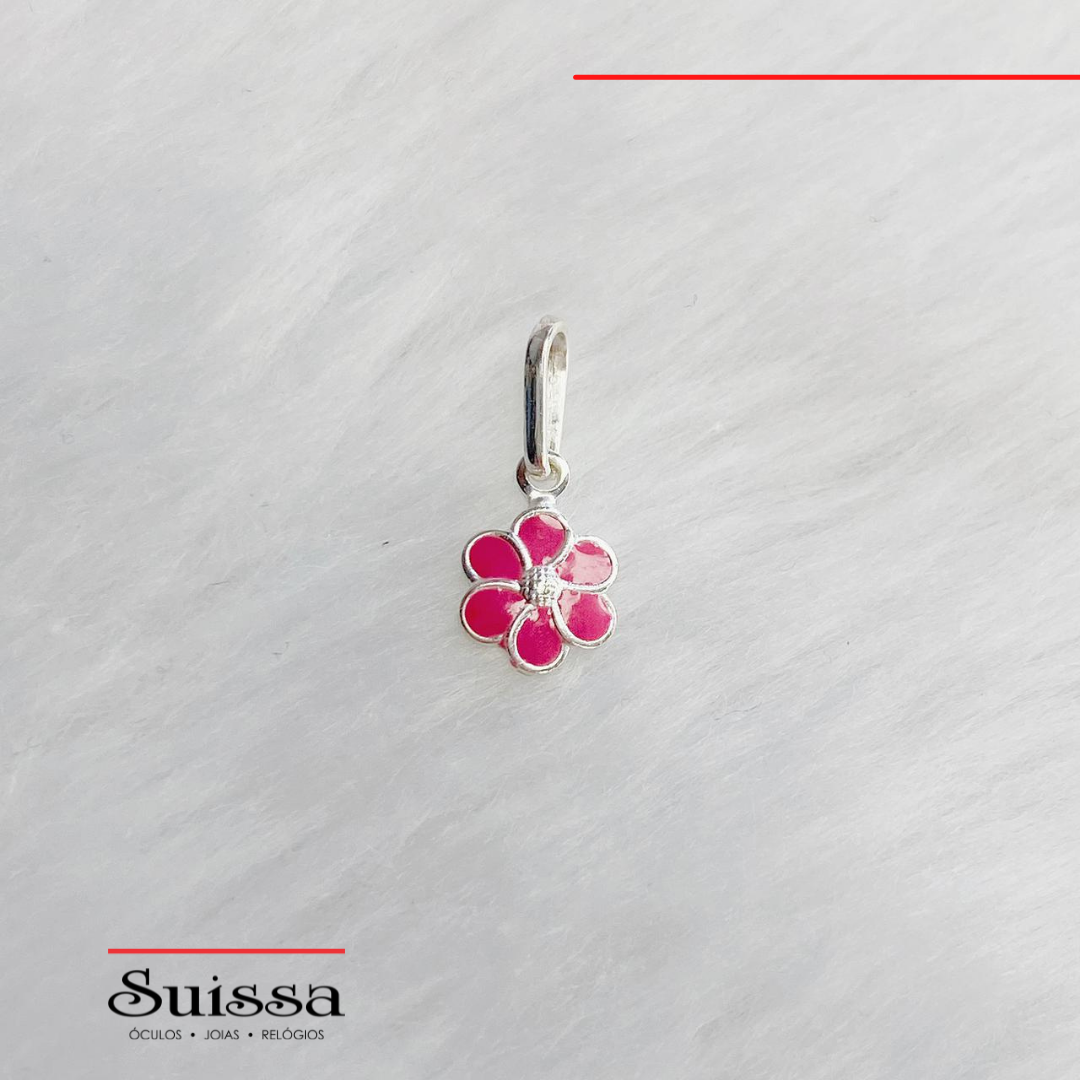 Um pingente confeccionado em prata 925, com um lindo formato de flor esmaltada na cor rosa.