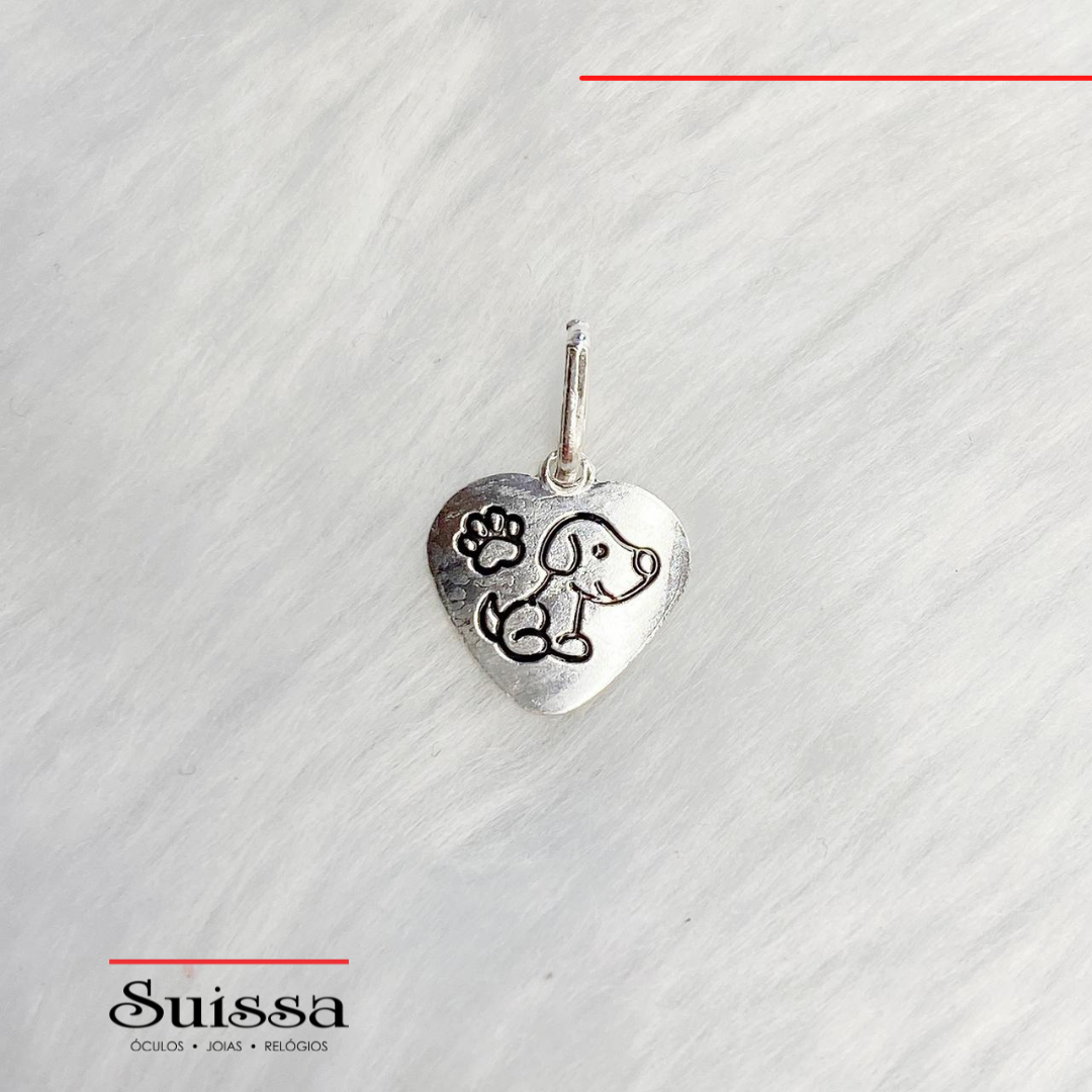Confeccionado em prata 925, o pingente é em formato de coração e conta com uma gravura de um lindo cachorrinho, ideal para você que ama pets ou para presentear alguém que também ama.