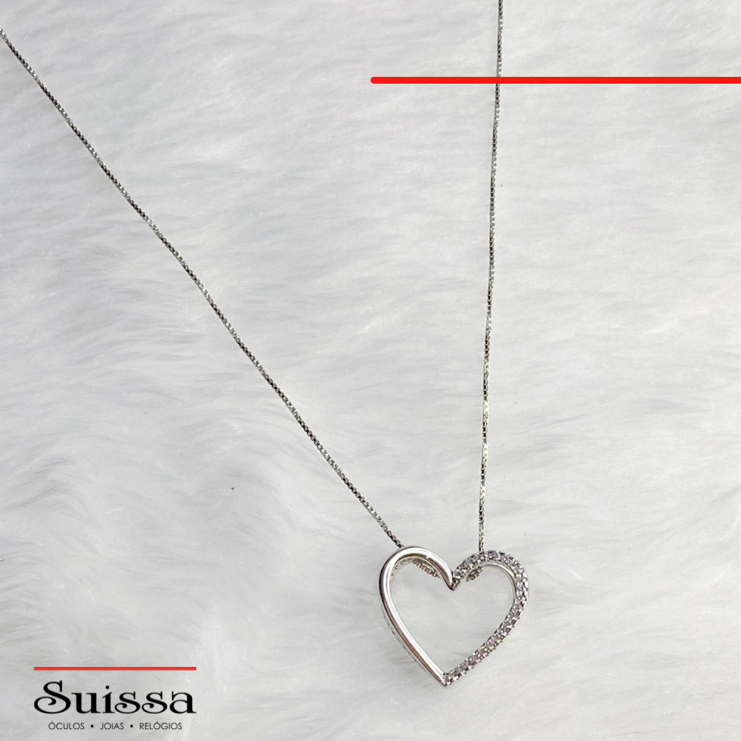 Corrente em Prata 925 - Malha Veneziana com Pingente de Coração Vazado e Cravejado em Zircônias Brancas