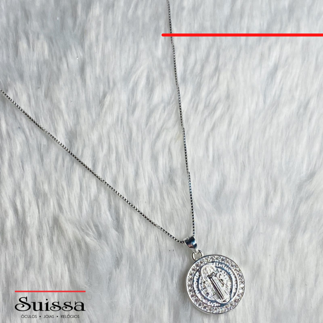 Corrente em Prata 925 Malha Veneziana Pingente de São Bento