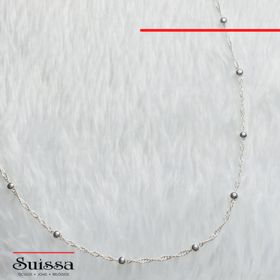 Uma linda e delicada corrente confeccionada em prata 925 modelo singapura com lindas bolinhas que dão muito charme à peça.