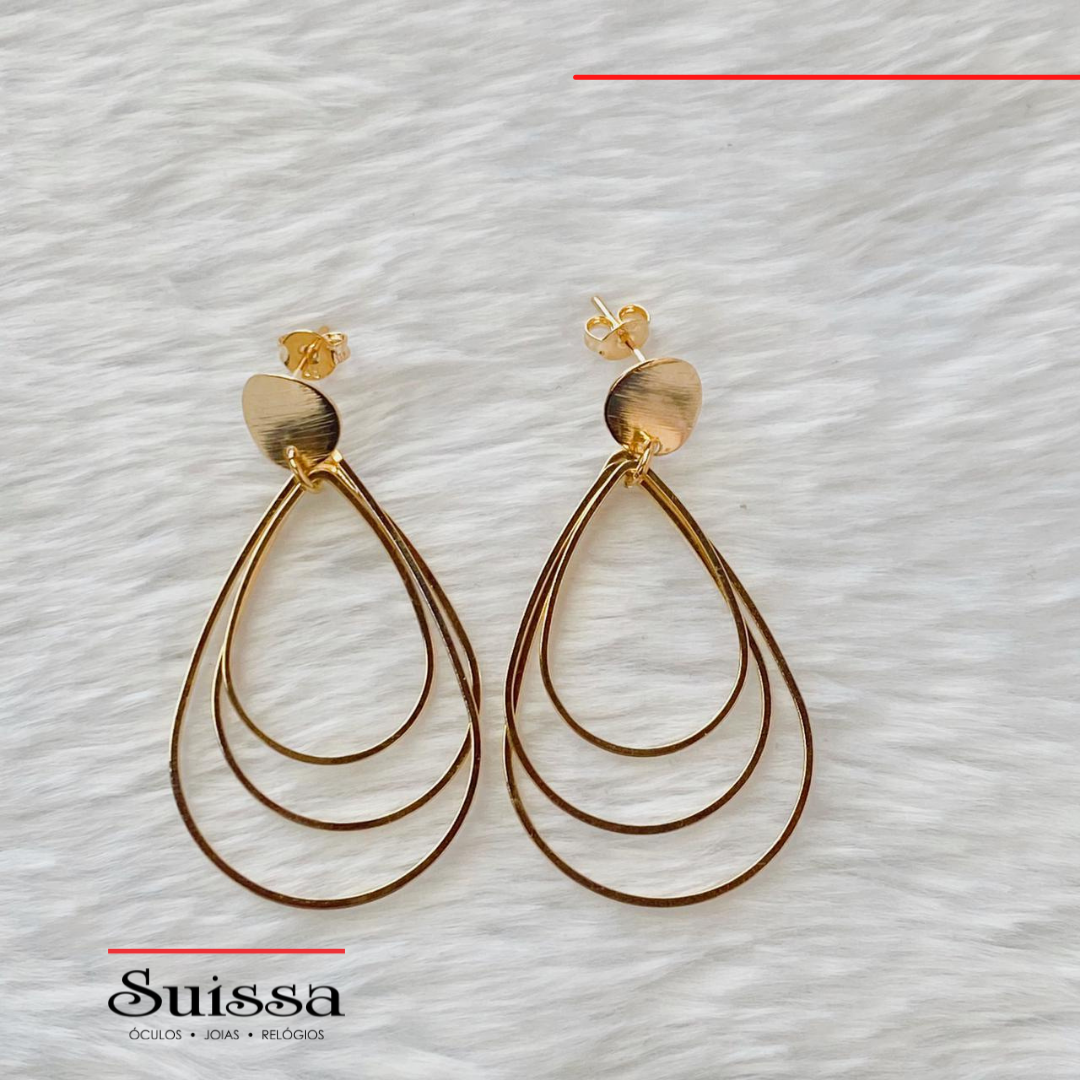 Folheados a ouro, os brincos contam com design de gotas duplas, tem acabamento polido e são duráveis.