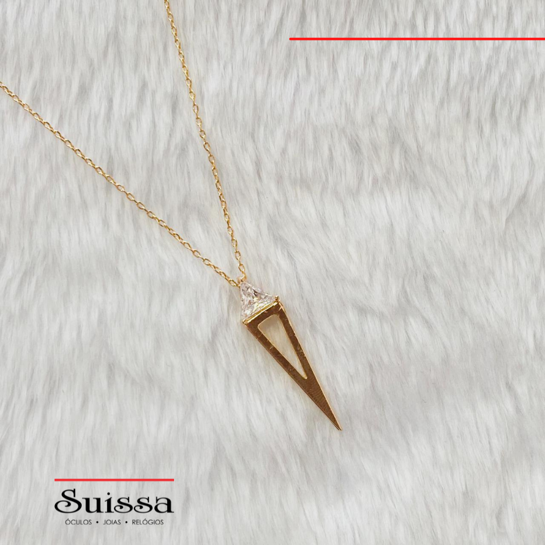 O colar é folheado a ouro, conta com uma corrente delicada, um lindo pingente em formato de triângulo.