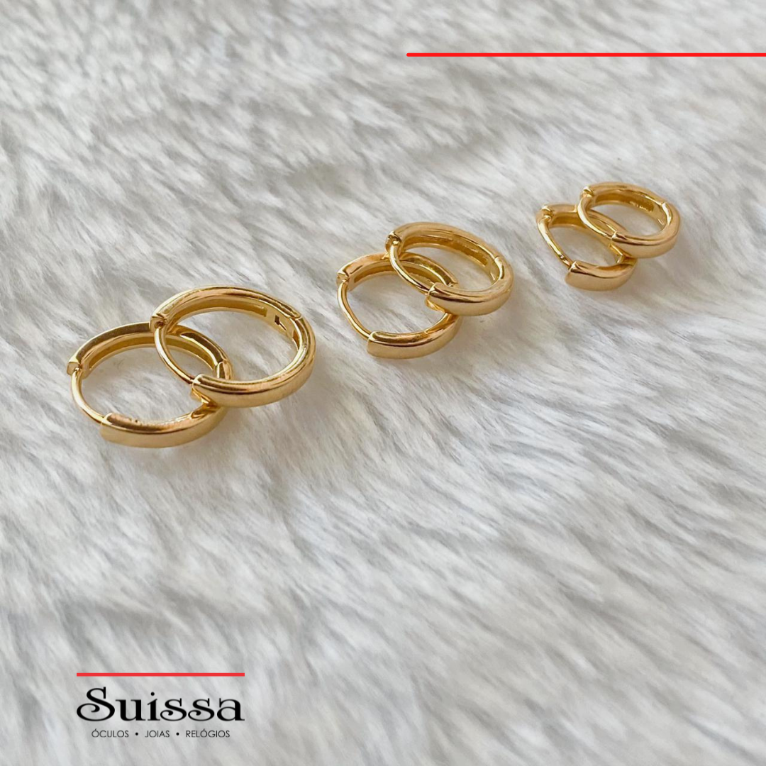 O trio de brincos é composto por pequenas argolas folheadas a ouro.